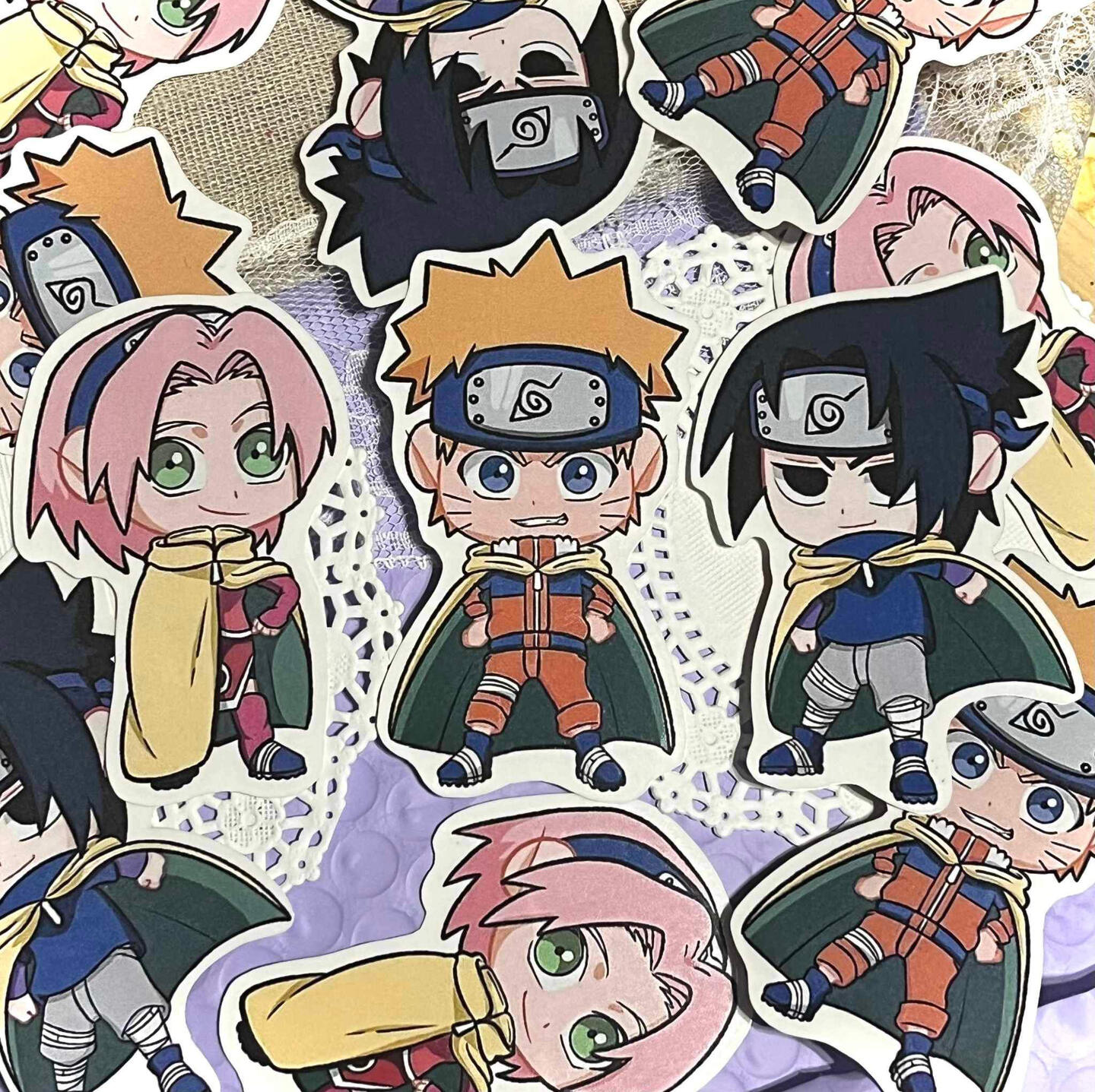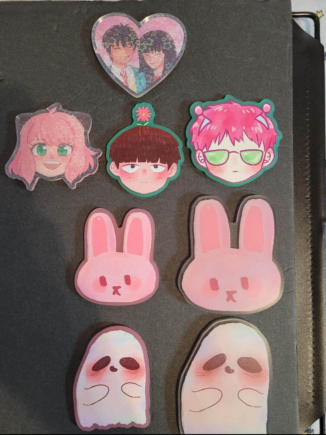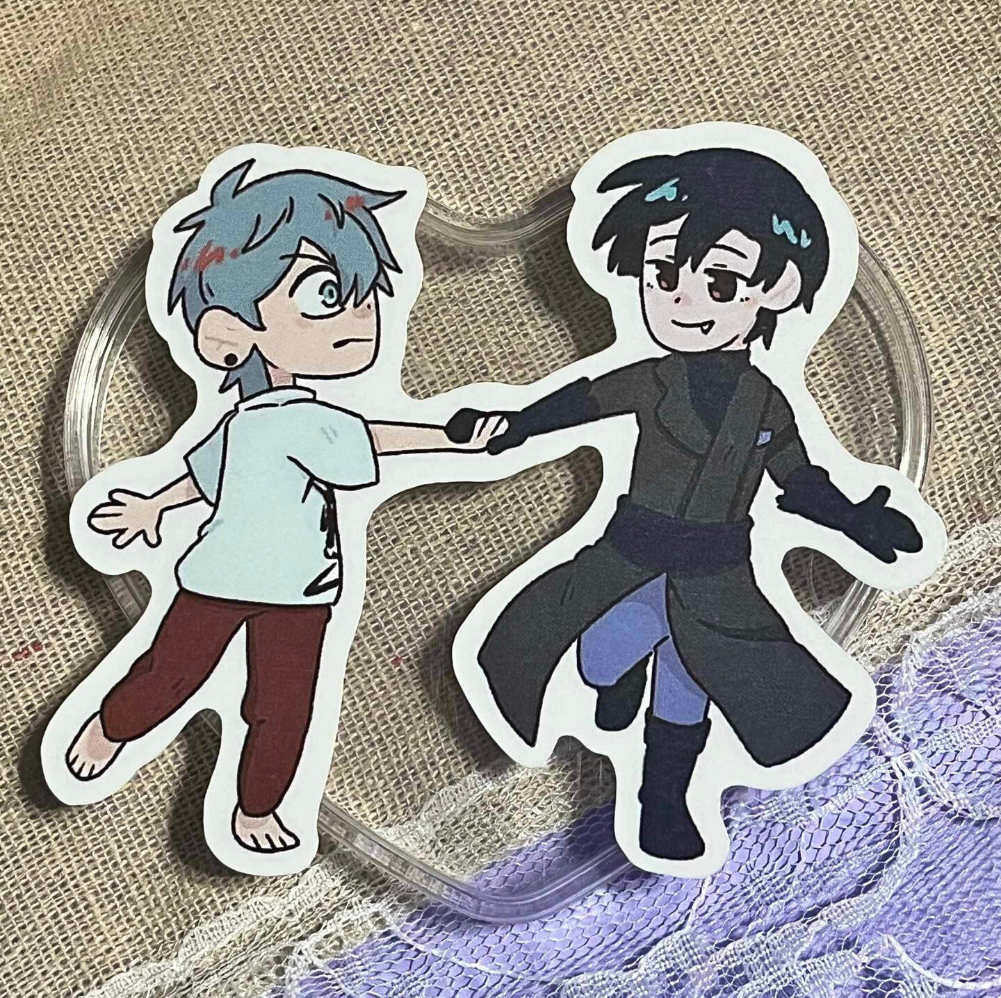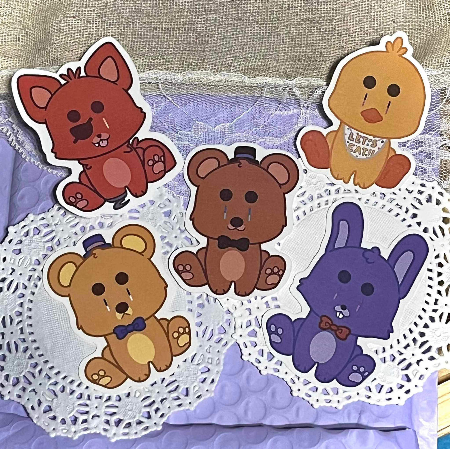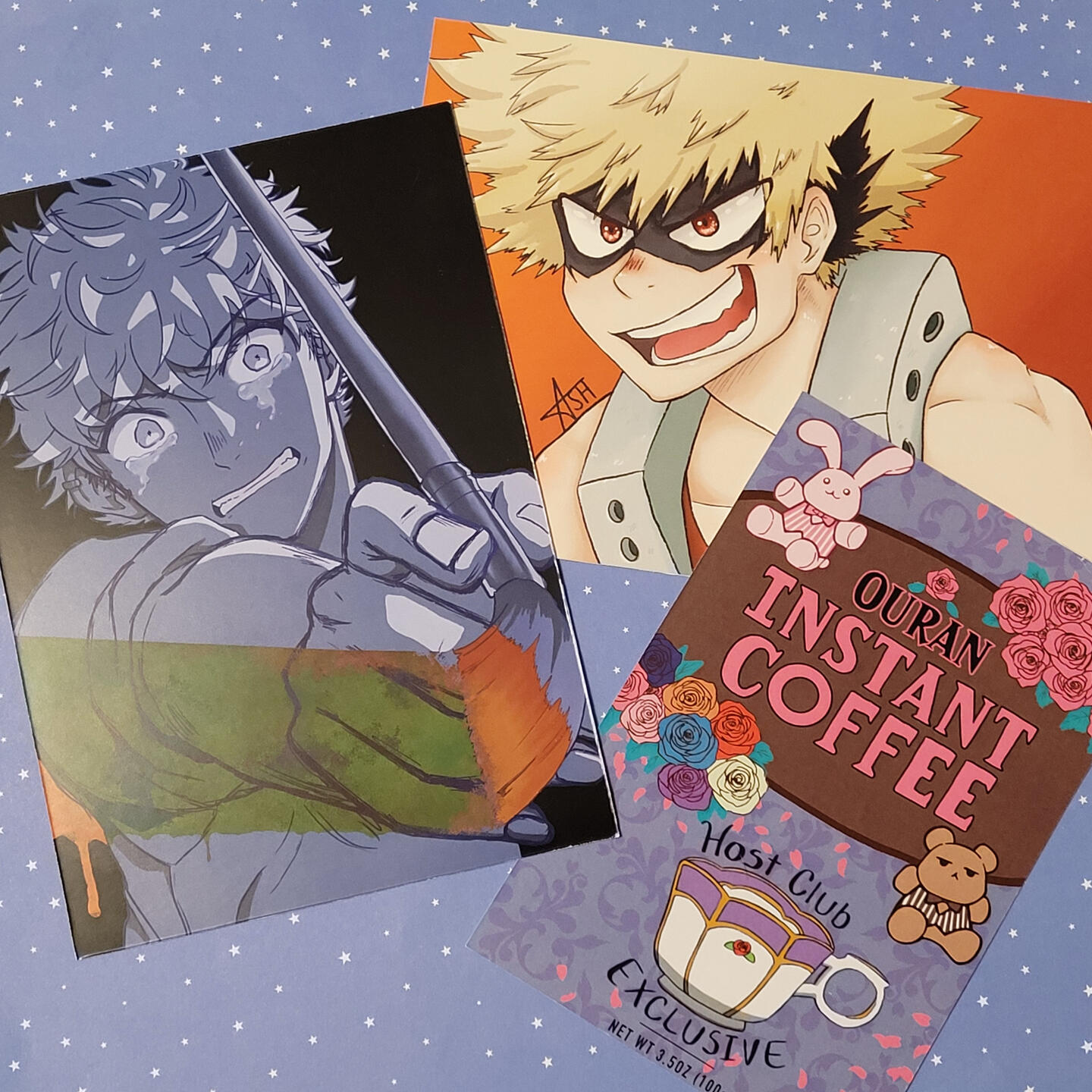 We sell stickers, charms, prints, pins, and tote bags.